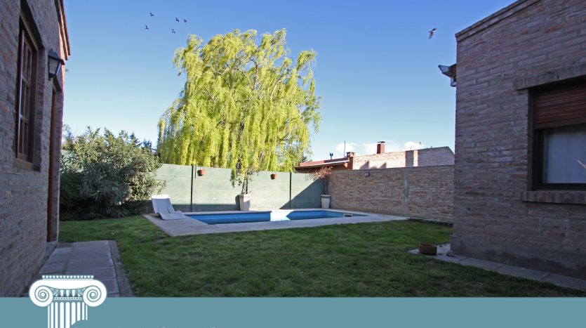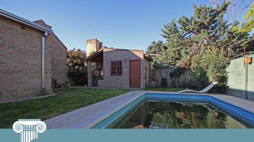 Descripción: Hermosa casa de barrio distribuida en planta baja. Compuesta de tres dormitorios, el principal con baño completo, baño completo con ante baño, cocina semi integrada a comedor diario, lavadero con patio seco, living amplio al frente, entrada para dos vehículos con semi-cubierto y patio con pileta.