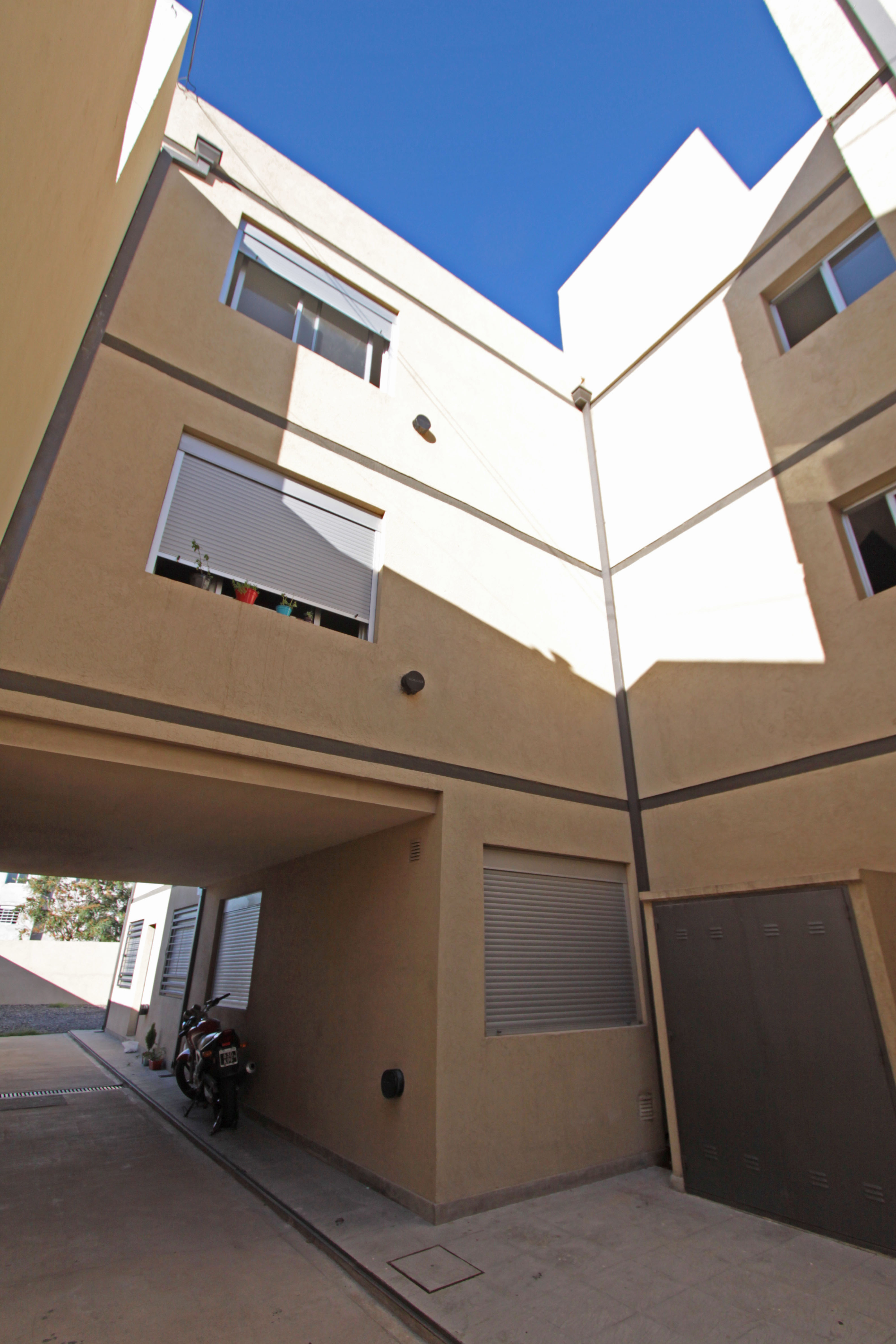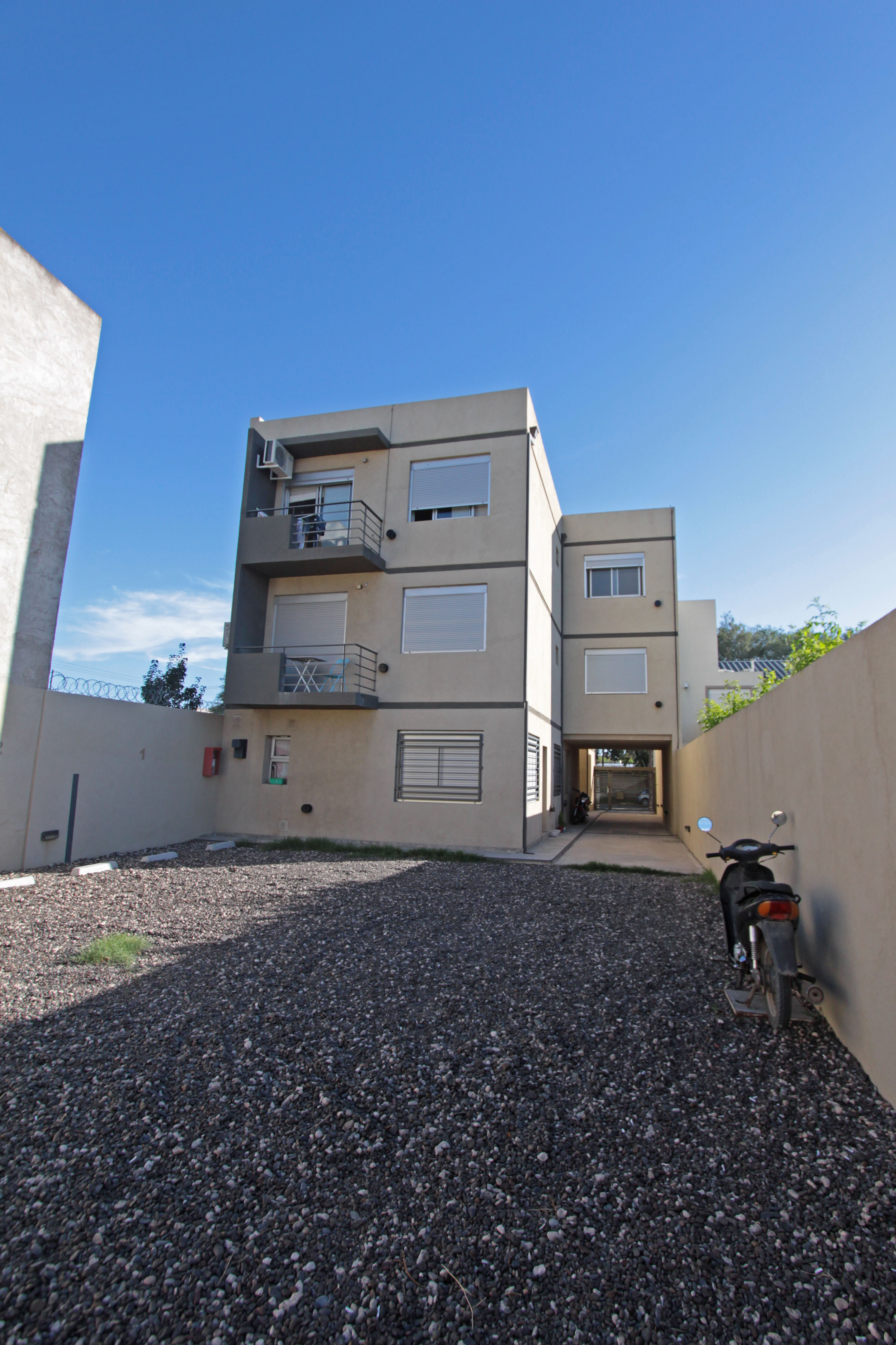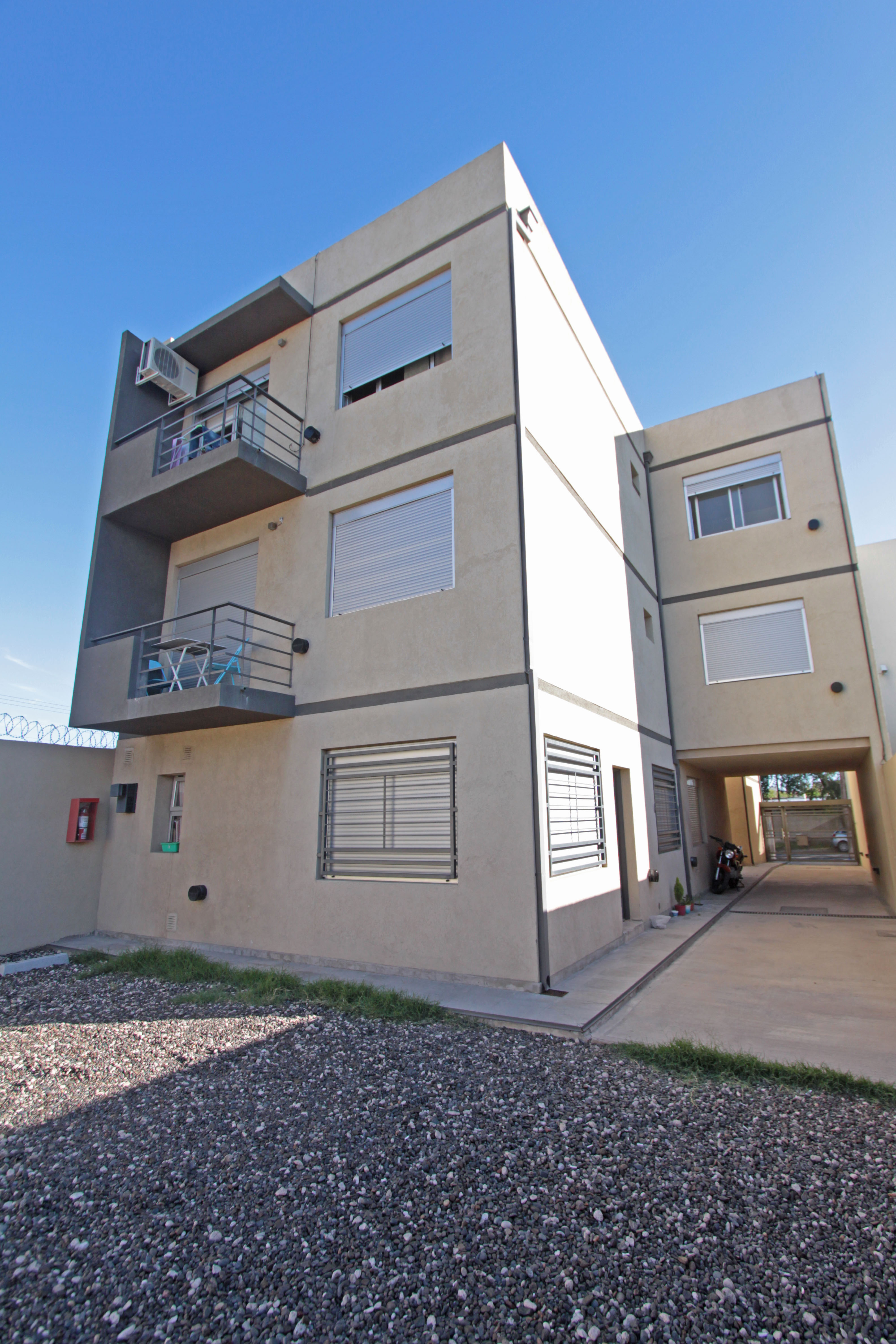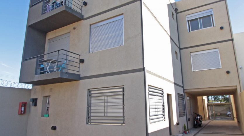 Descripción: Complejo de 12 departamentos de un dormitorio distribuido en una torre, planta baja y dos pisos por escalera, mas 6 unidades de cochera.