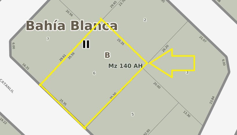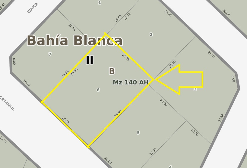 Descripción: Amplio terreno ubicado en calle Catanlil, entre Waika y Lanquetruz. A metros de Calle Tres Sargentos. Lote de 900m2 (25,35 x 35,50m). Servicios de Agua, Luz y Gas. Excelente entorno.