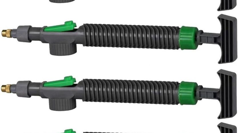 Похожая конструкция, но немного иная концепция подачи воздуха непосредственно в рычаг ручного опрыскивателя. Сначала давление подается в бак, а не в насос. Во-вторых, воздух нагнетается с помощью специальной штанги в основании резервуара. Кстати, её можно установить с любой стороны, в зависимости от того, какой рукой вы лучше управляете (левой или правой). Рычажные инструменты оснащены резервуарами объёмом около 16 литров.
